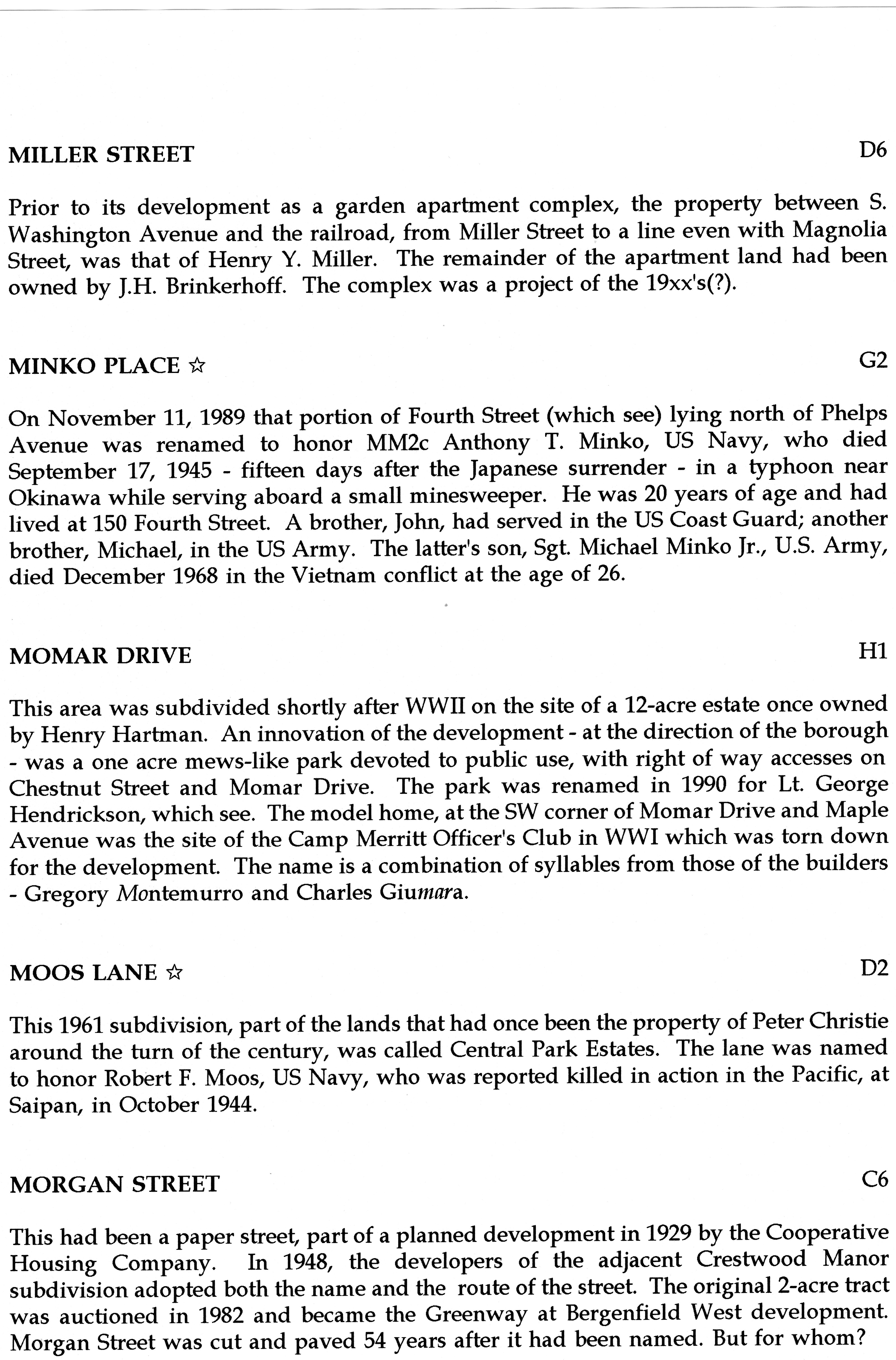 Bergenfield Street Names and Derivations by Myron Weisberg