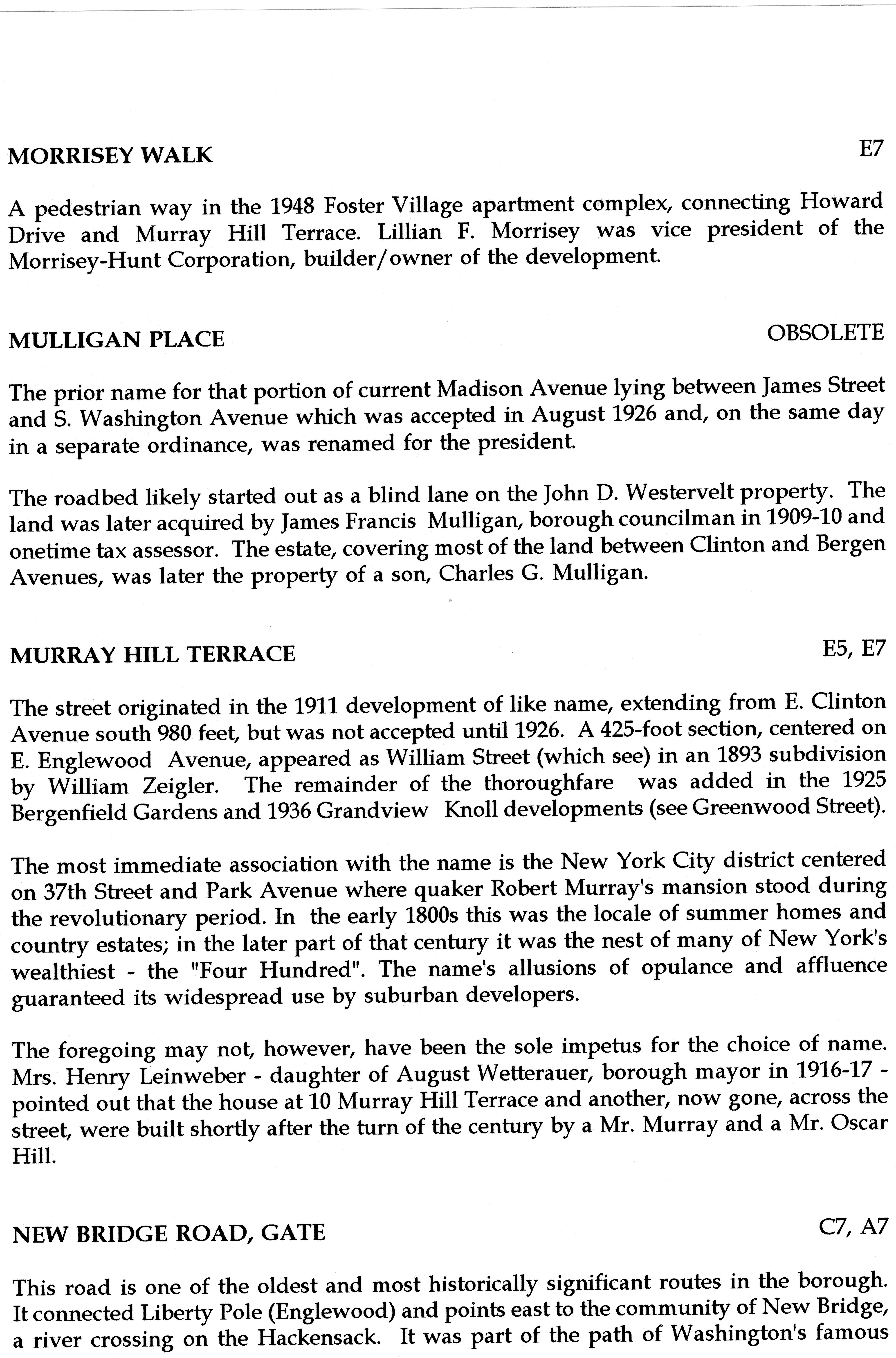 Bergenfield Street Names and Derivations by Myron Weisberg