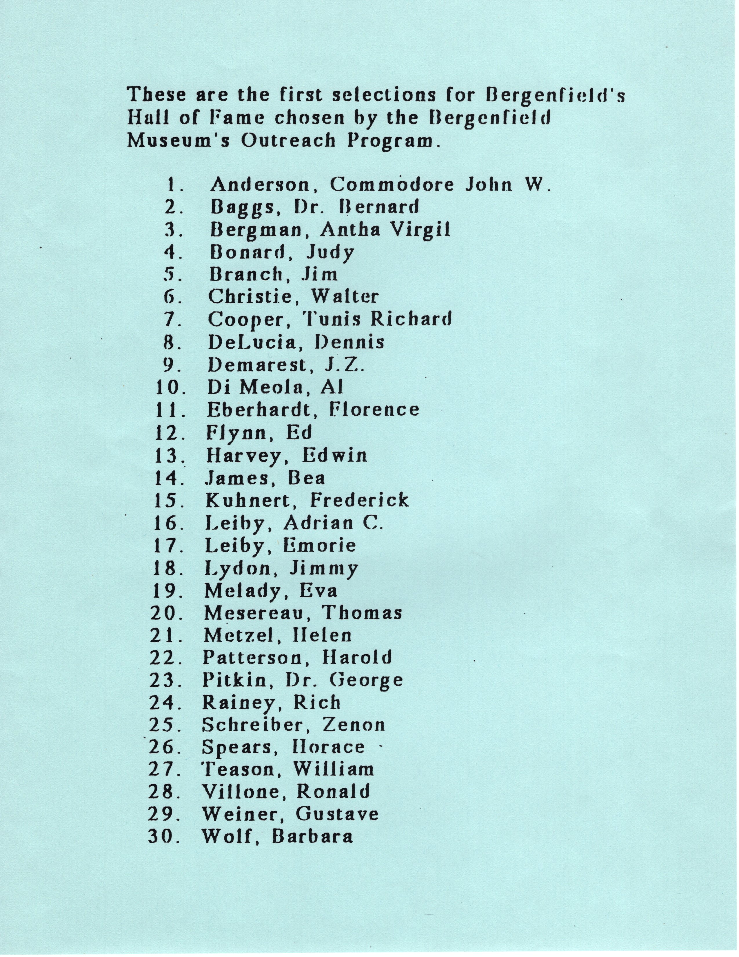 Bergenfield Hall of Fame Biographies Booklet