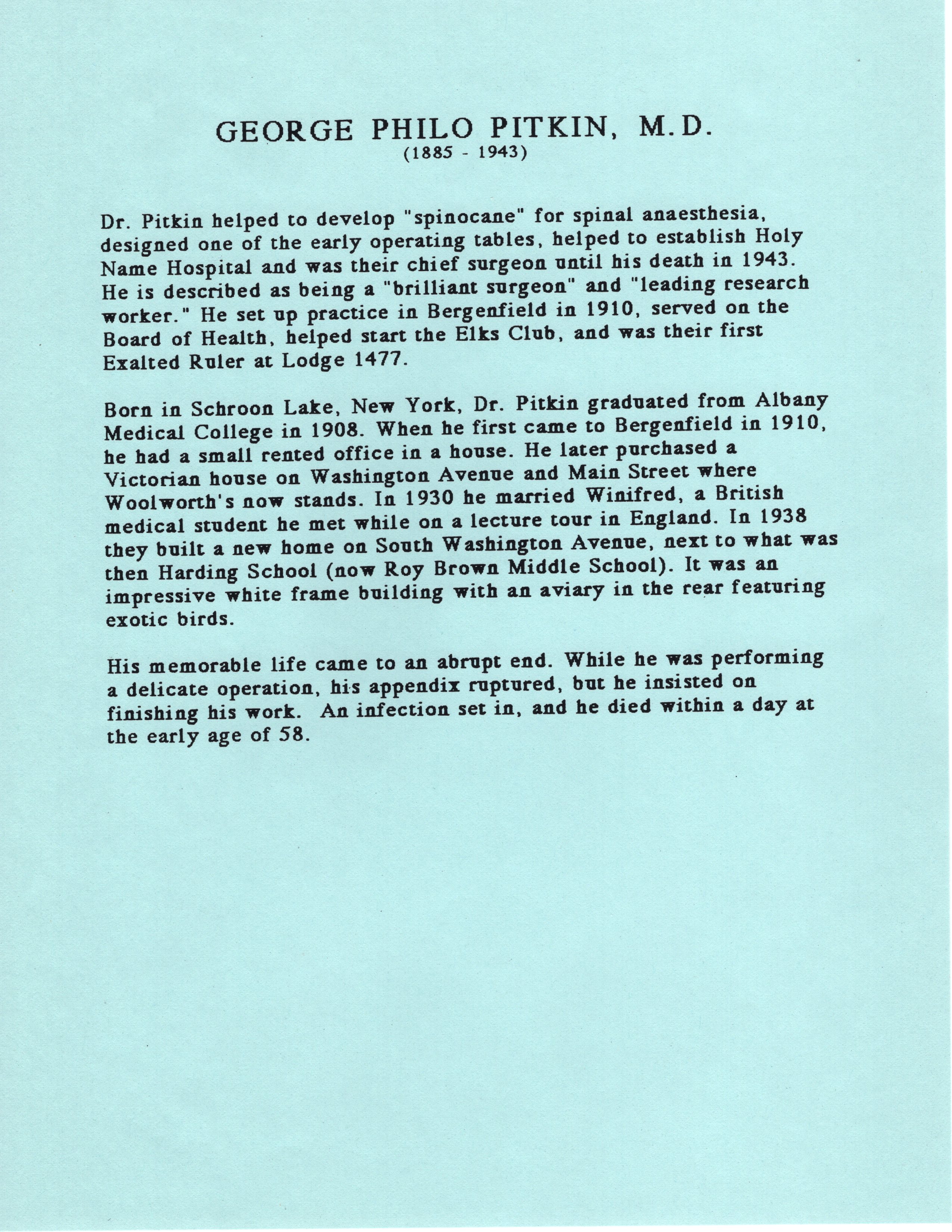 Brief Biographies of Notable Members of the Bergenfield Community.