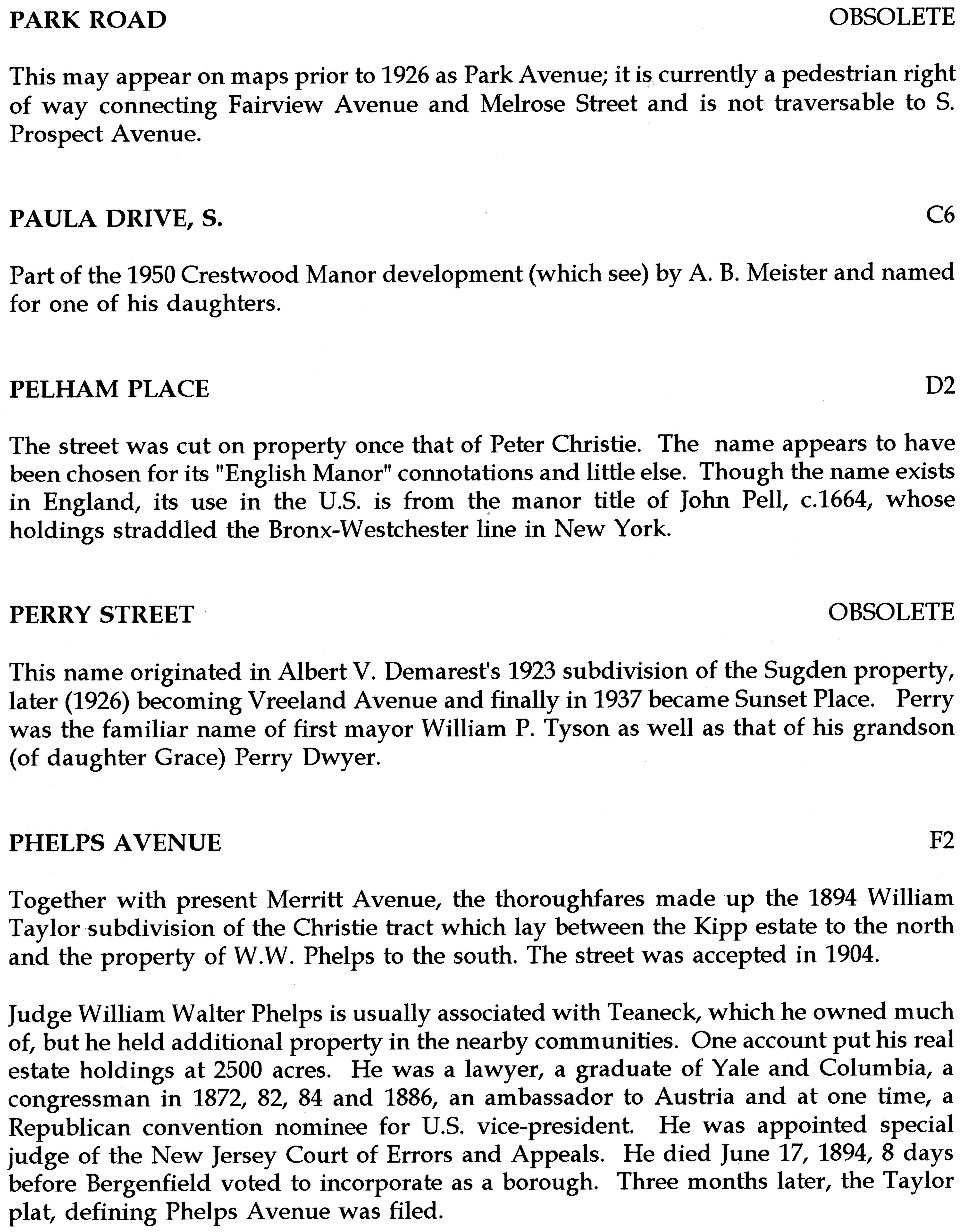 Bergenfield Street Names and Derivations by Myron Weisberg