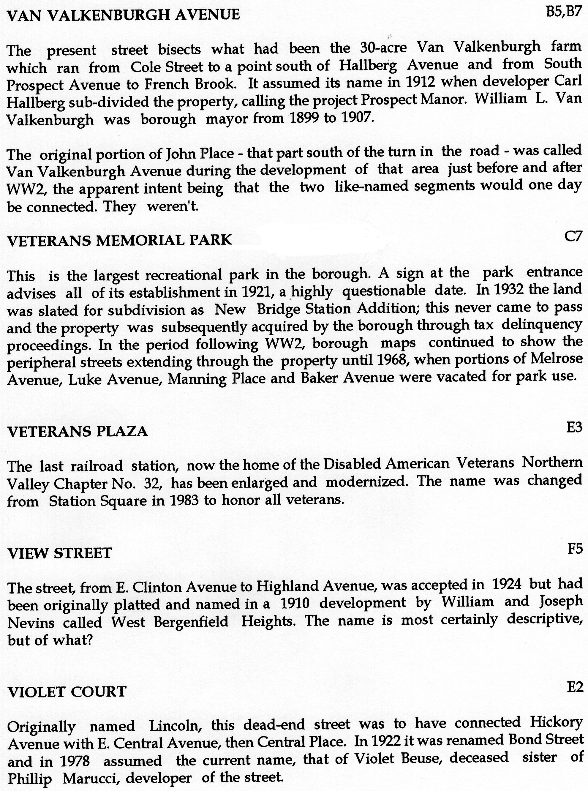 Bergenfield Street Names and Derivations by Myron Weisberg