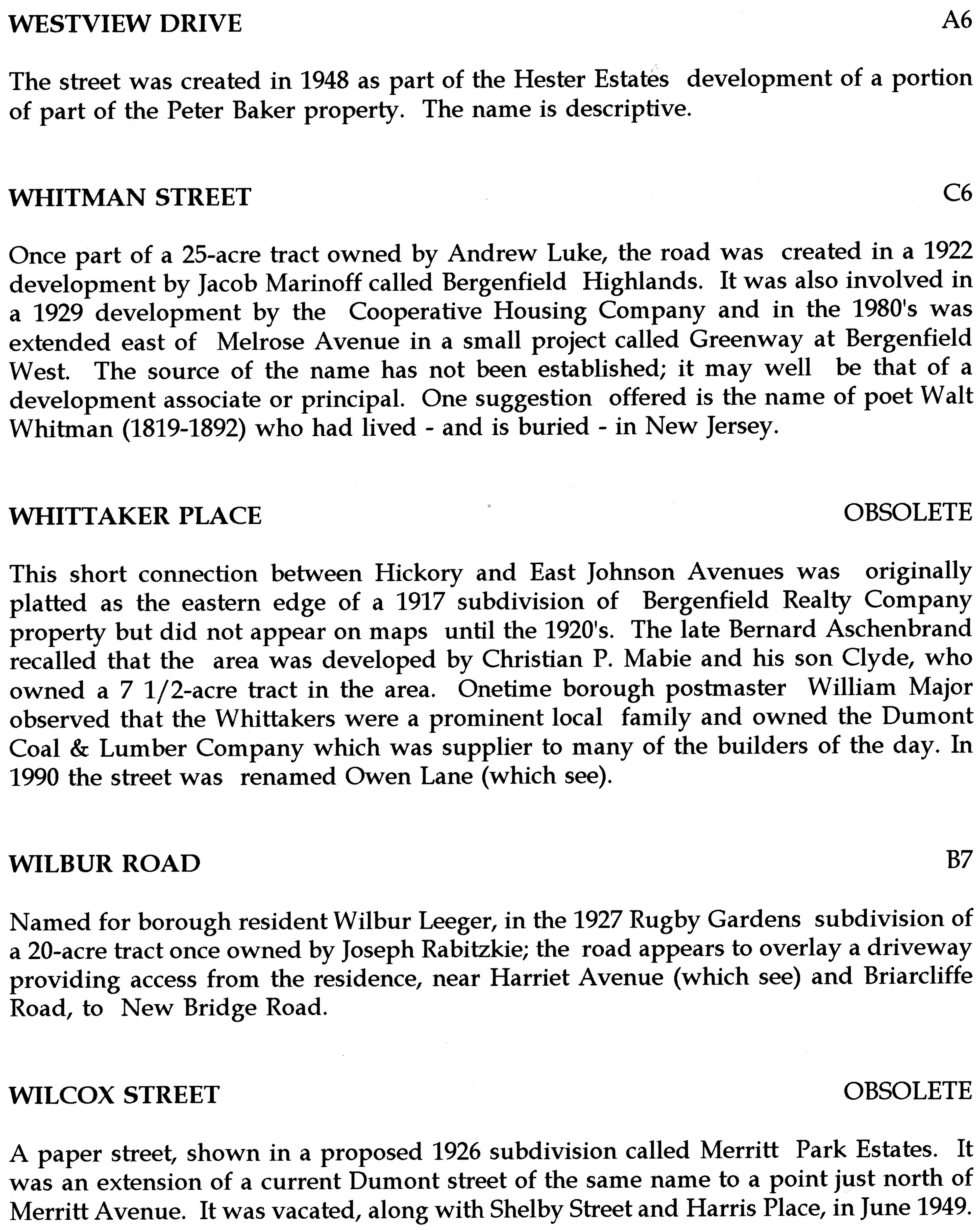 Bergenfield Street Names and Derivations by Myron Weisberg