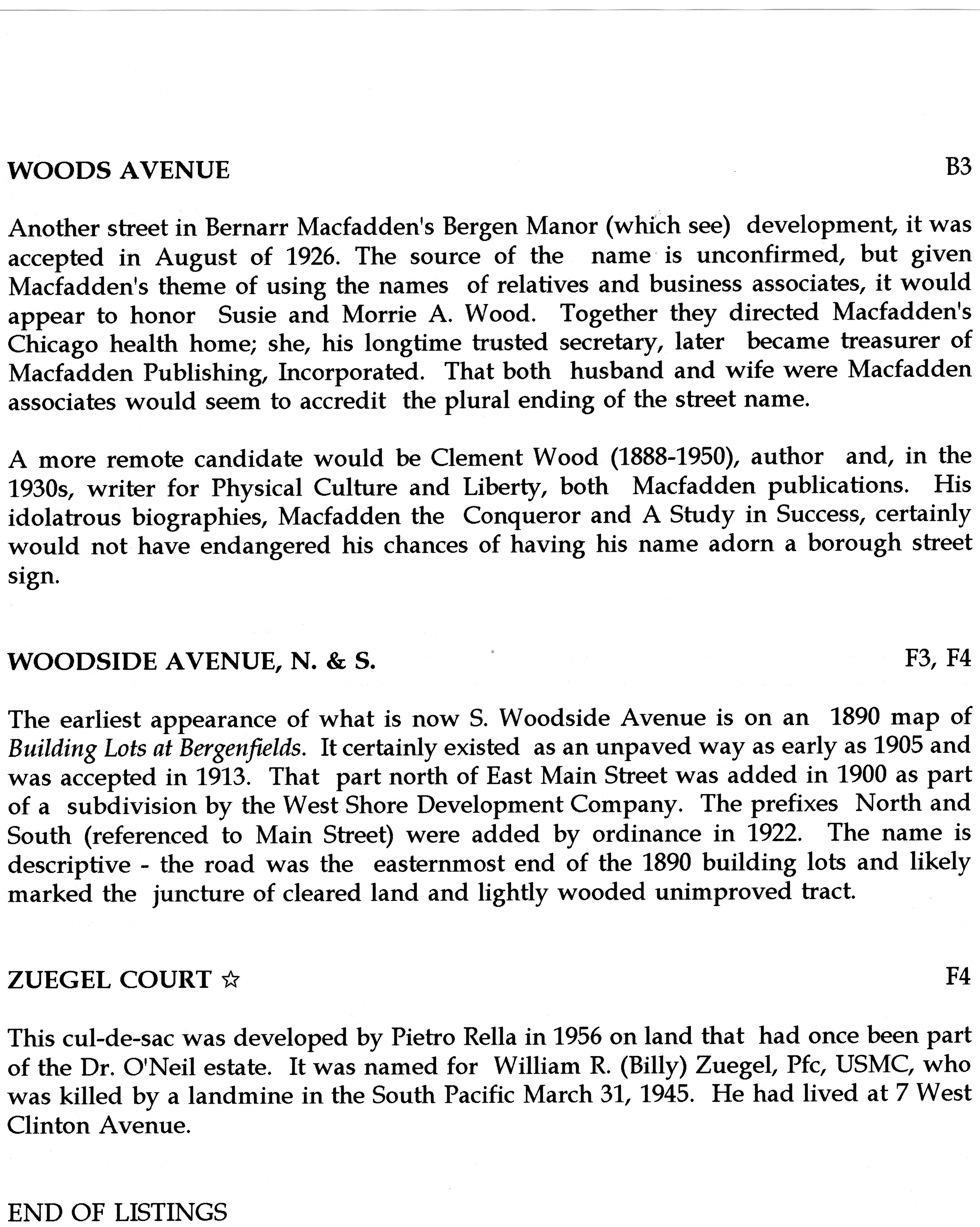 Bergenfield Street Names and Derivations by Myron Weisberg