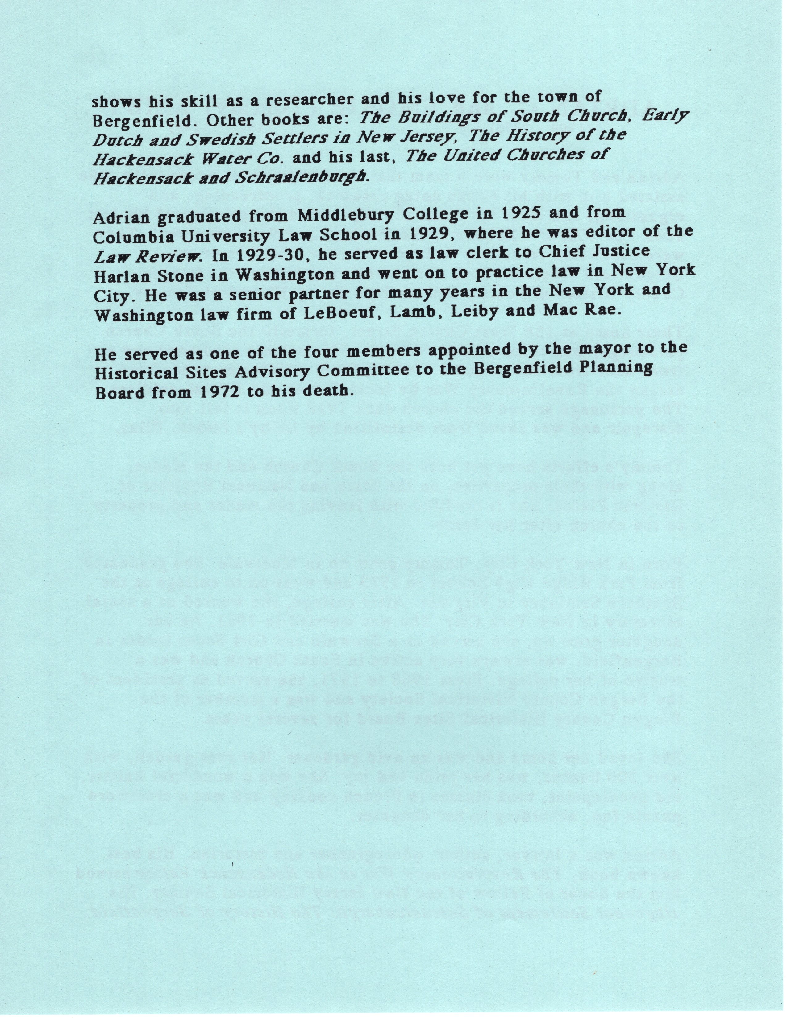 Brief Biographies of Notable Members of the Bergenfield Community.